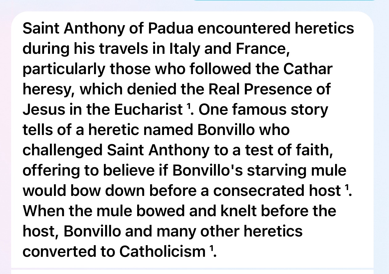 4. Miracle of the Mule: As I mentioned earlier, he challenged a heretic to a test of faith, which resulted in a mule bowing down before a consecrated host, demonstrating the Presence of Christ.