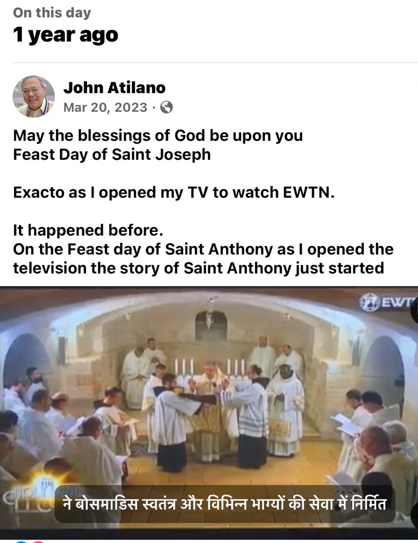 .When I got home and turned on the television, it was tuned to EWTN, the Catholic TV program. To my amazement, they had just begun airing the story of Saint Anthony—the very saint story that I read earlier that evening. I watched intently, deeply moved by his life and the miracles
