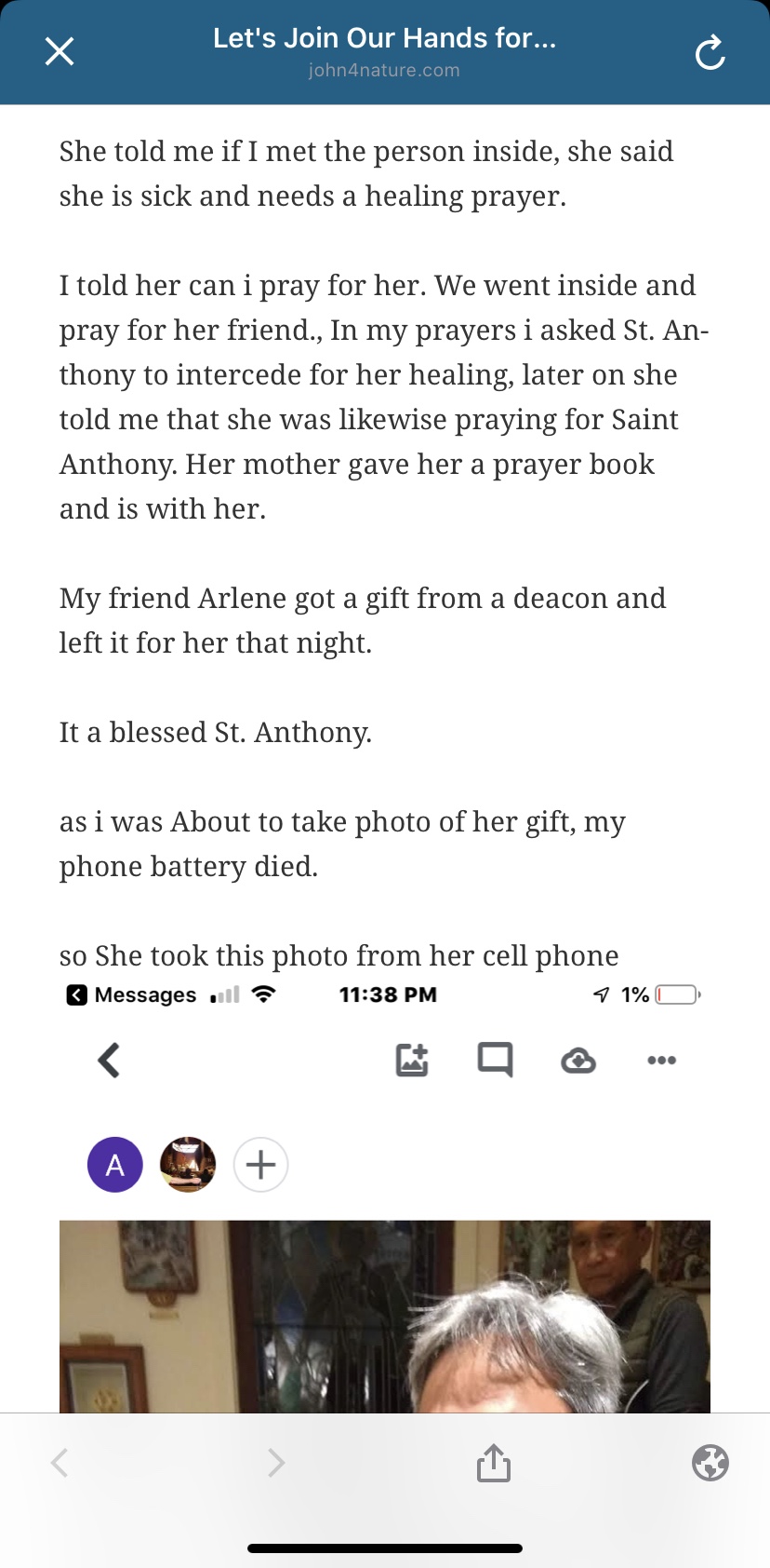 2019 She told me to pray for somebody in the adoration chapel on the feast day of Saint Anthony.