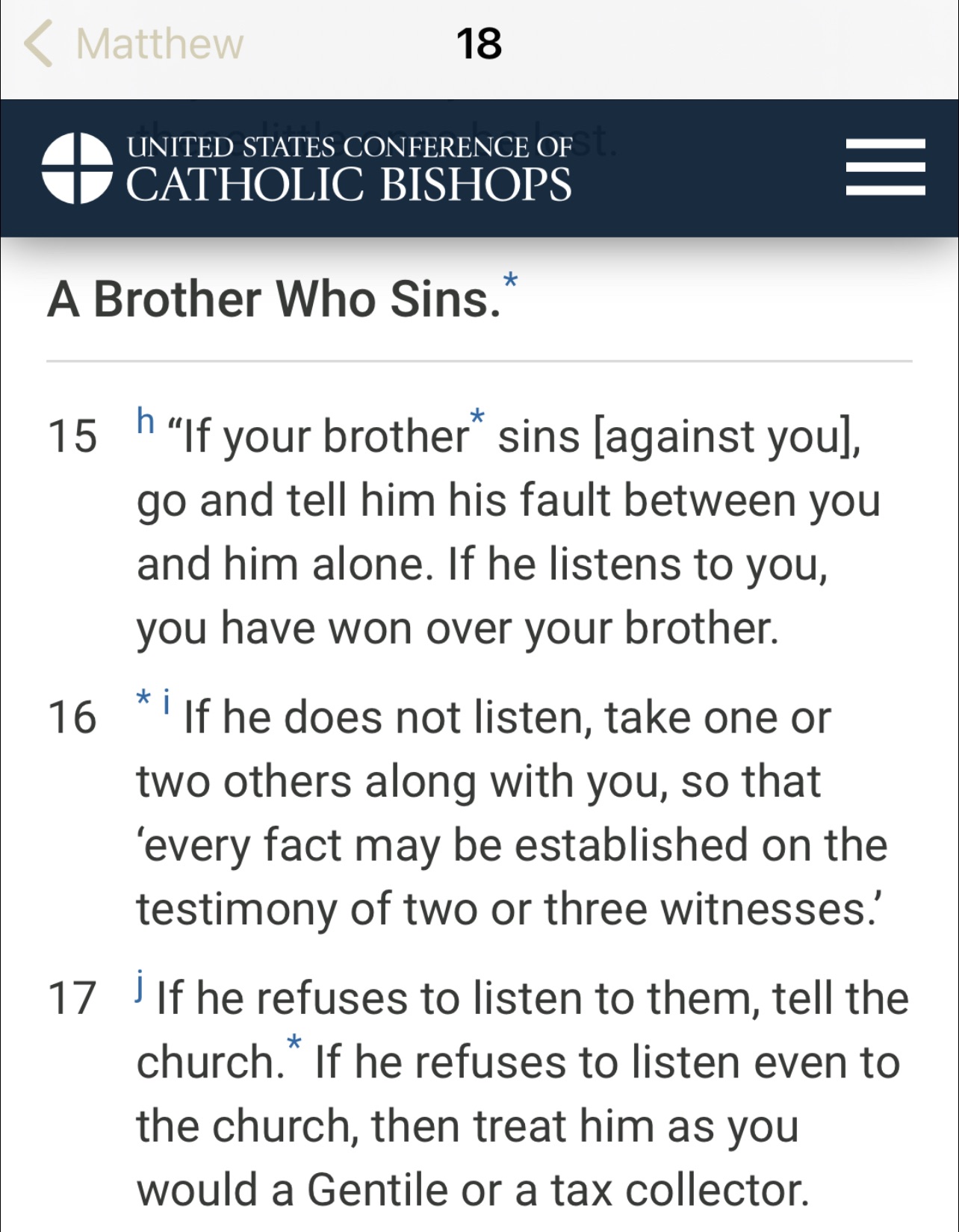 When we have a charge against others. Mt 18:15-17