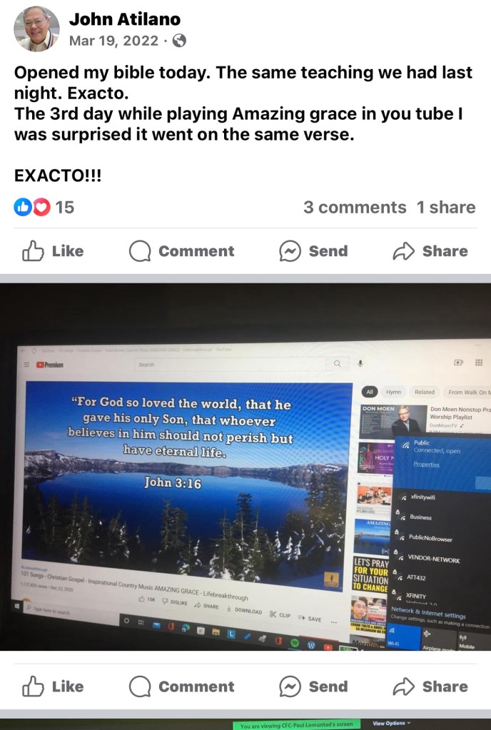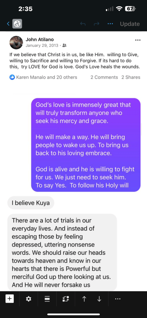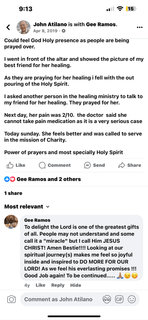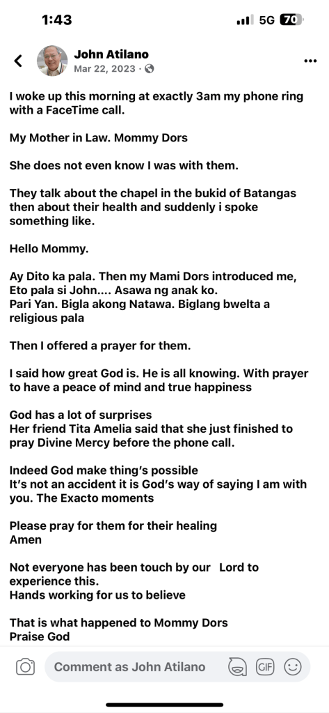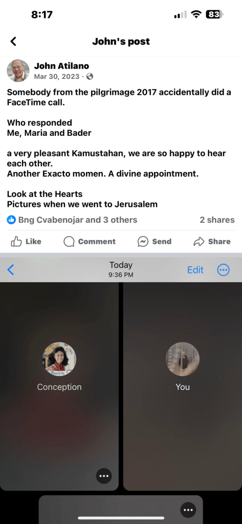 Connection with my college classmate and Best friend Ferdinand Calingasan. Many exact moments with a deep connection on my spiritual journey. His Father invited me to the Curcillo movement