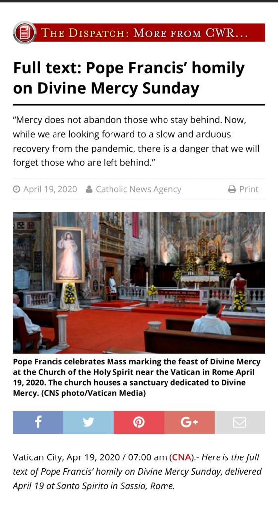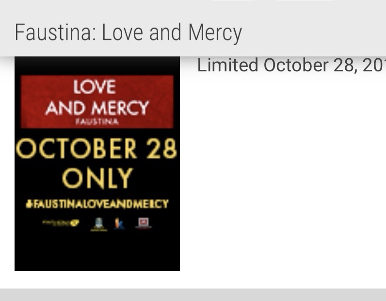 I passed by The Adoration Chapel to pray and while driving I heared in the Catholic Radio an invitation to watch the Movie of Saint Faustina Divine Mercy,