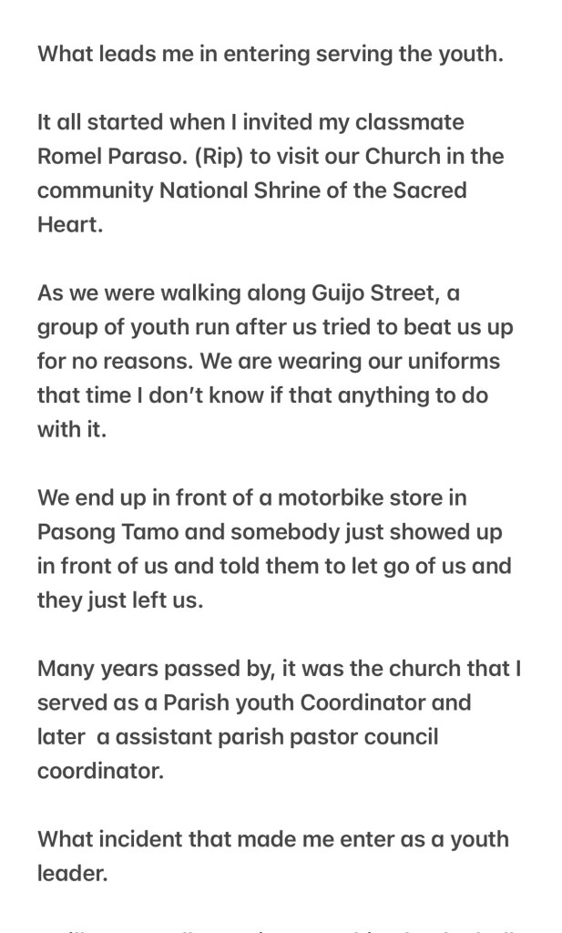 His Brother Frances is one of the Federation President of the Kabataan Barangay batch 85 whom we trained in Makiling.