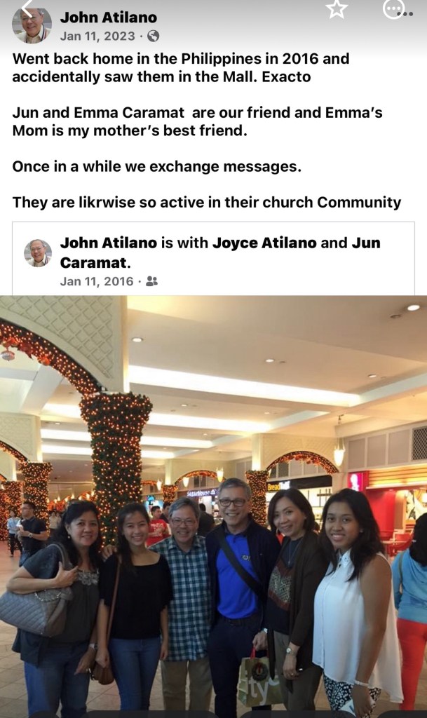 Connection with Jun and Emma Caramat both of them Leaders of a family ministry in the Philippines Exacto