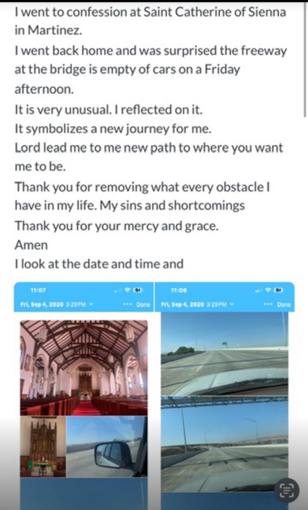 I went to confession at Saint Paul church in San Pablo California and after my communion i told father about my Saint Anthony experience in Saint Dominican adoration chapel