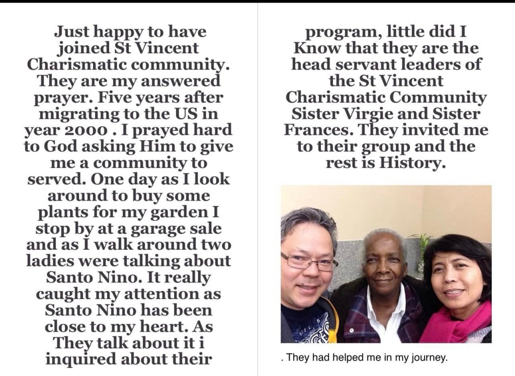 A Divine Appointment when I joined Saint Vincent Charismatic Prayer Group