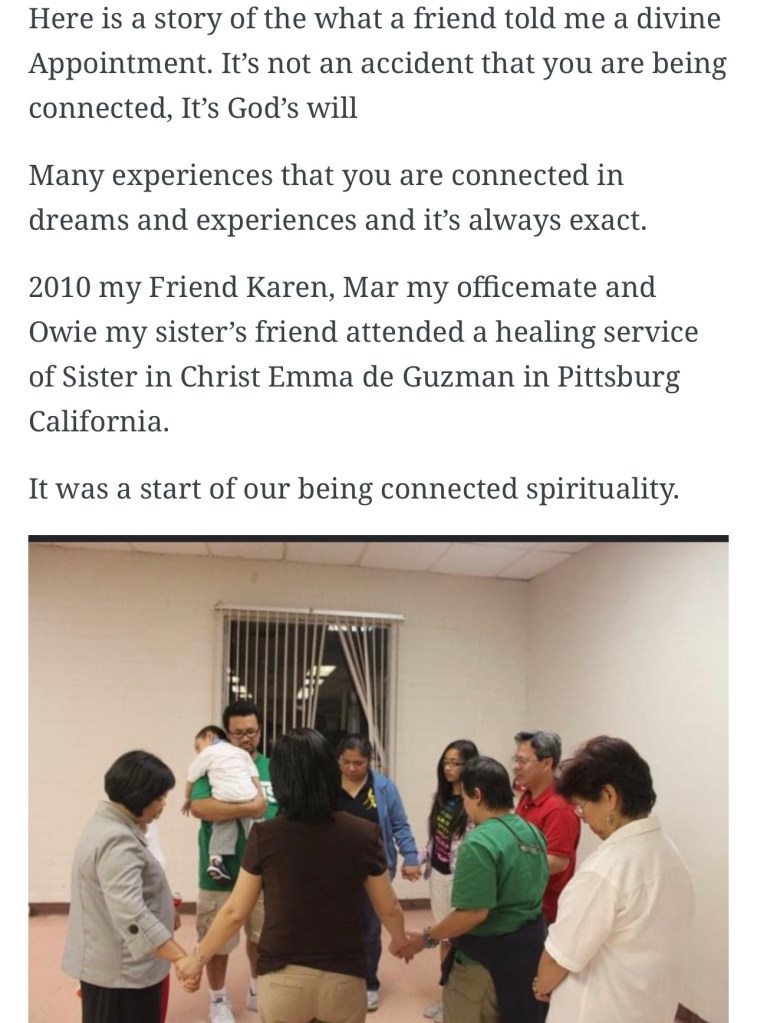 The lady from India went to Mass at the Holy Family Church in American Canyon and got a flyer of this LSS, She asked to be dropped here after the pray over session she was healed.
