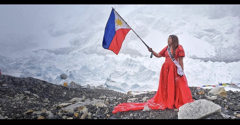 When talking about the highest level, it means wearing a red Filipiniana terno and proudly raising the Philippine flag as she reached Mt. Everest’s base camp, which is 5,364 meters above sea level.
