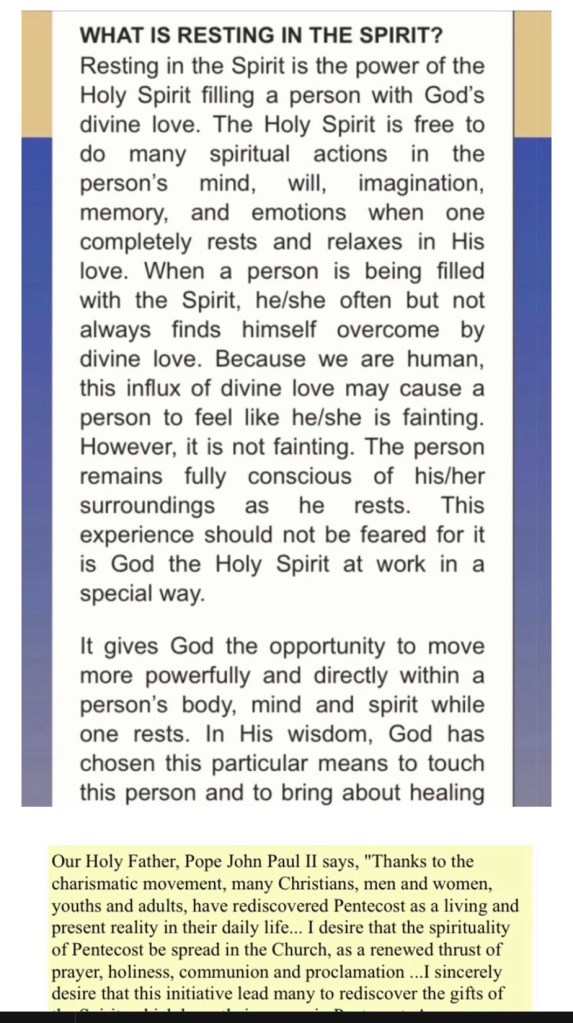 Sis Rose prayed over Geraldine picture and I was slained /rested in the Spirit during the healing mass