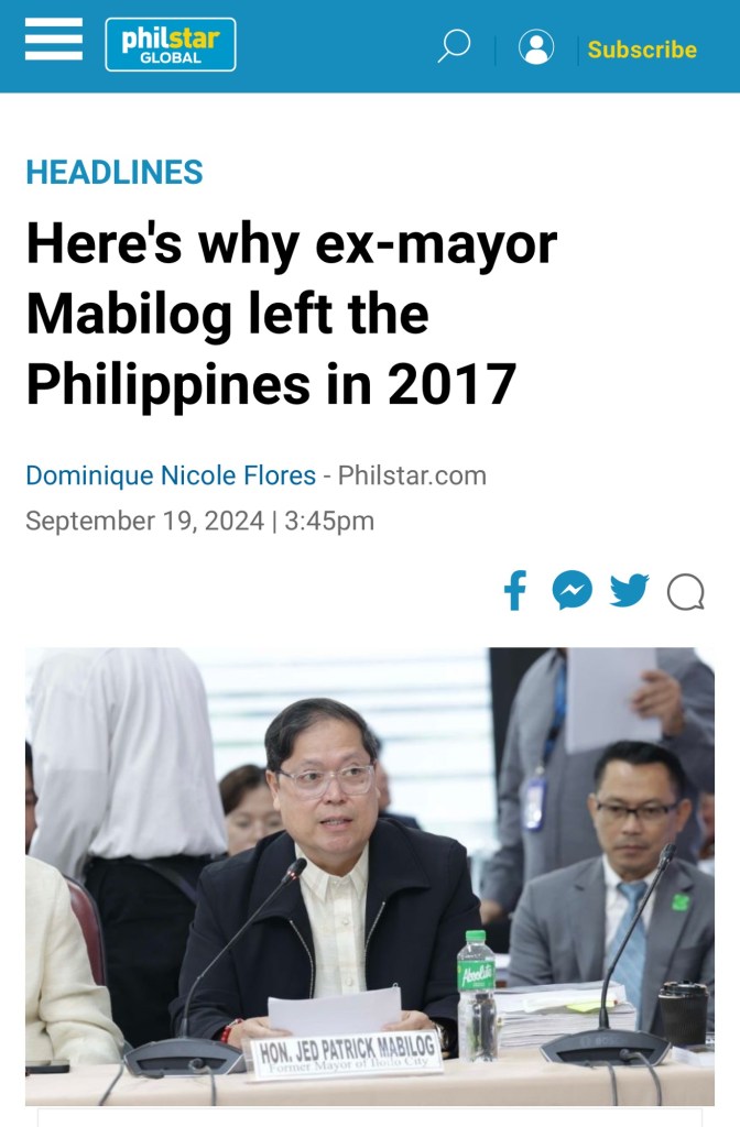 MANILA, Philippines — Former Iloilo City Mayor Jed Mabilog said on Thursday, September 19, that he did not return to the Philippines in 2017 due to a warning from a police general not to come home.