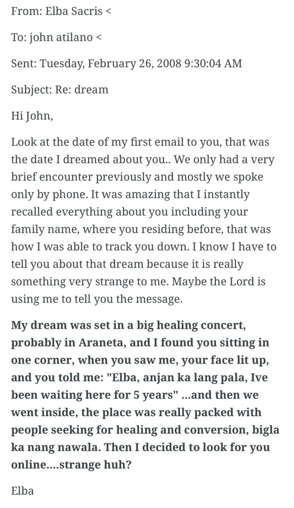 I really do not know the priest who celebrated that Mass until my friend Elba shared her dream.
