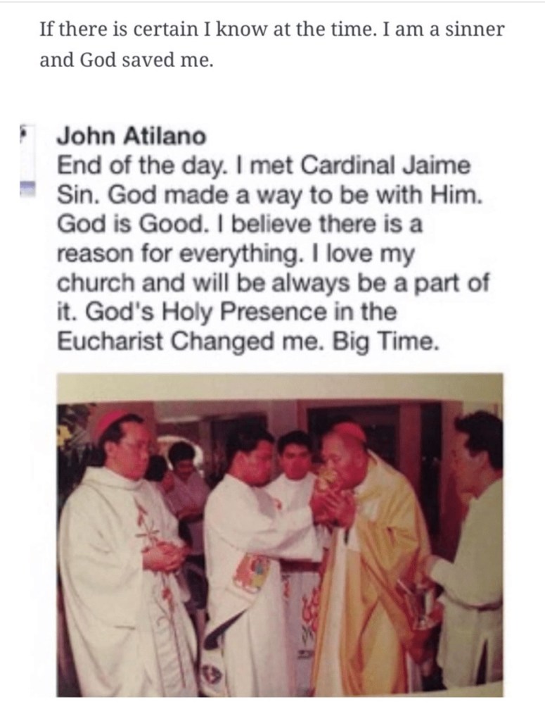 I cannot understand what happened in my life as I was reconnected with Cardinal Sin.