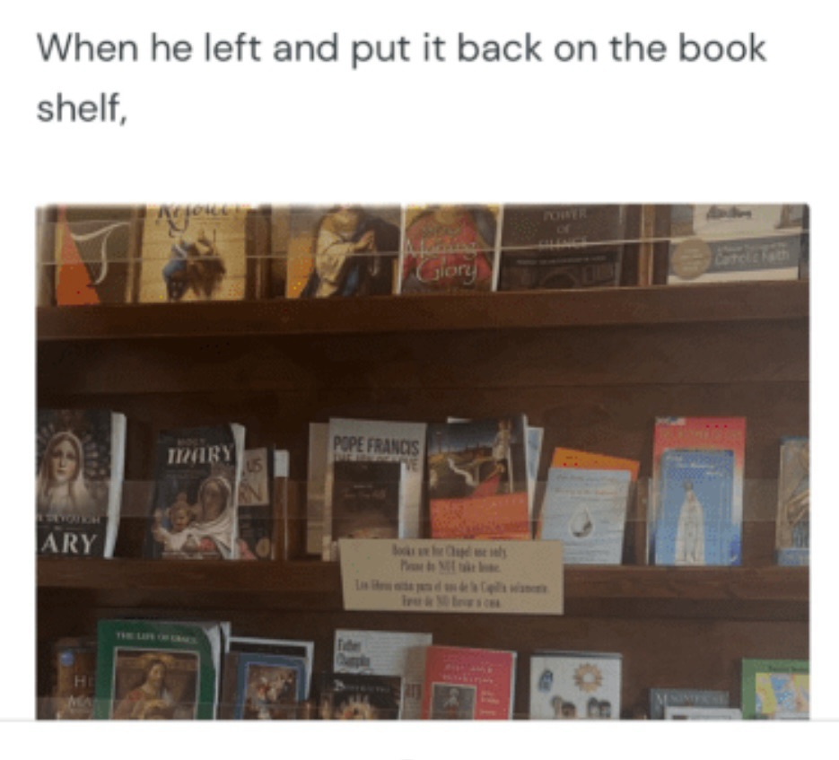 When he left and put it back on the book shelf,