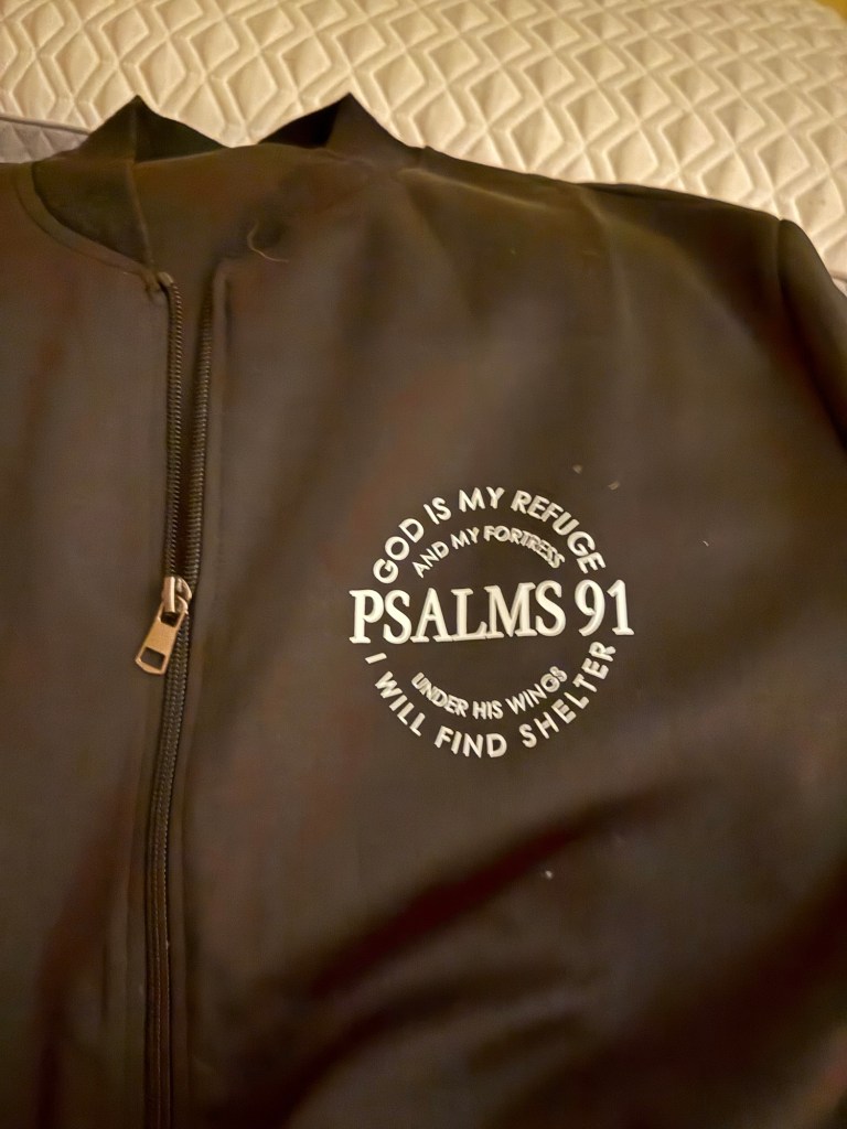 I wore it today at Walmart. A man approached me with a big smile and pointed at my Psalm 91 logo