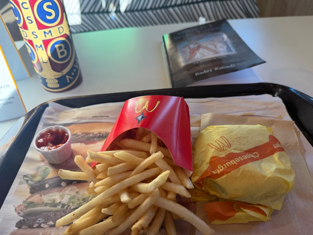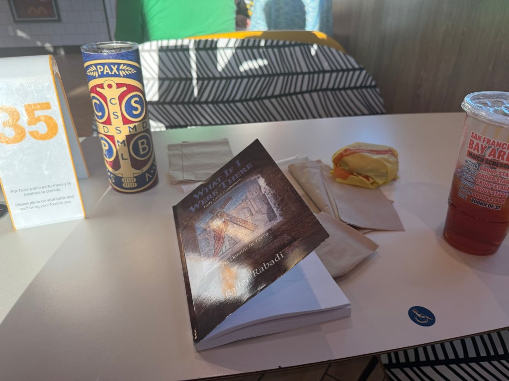 I found myself sitting quietly, eating my fries… and reading the book I had just received—What If I Were There… Holy Land by Bader Rabadi.
