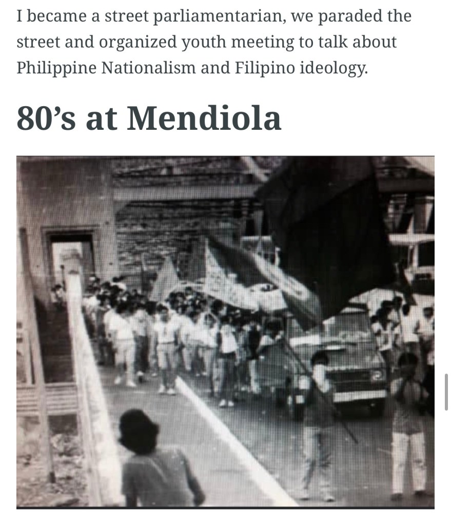 His courage as one of the “new Gomburza” of the 1970s fueled my passion for serving others. I became a street parliamentarian, advocating for nationalism and Filipino identity, but my involvement was often questioned because of my perceived elitism.