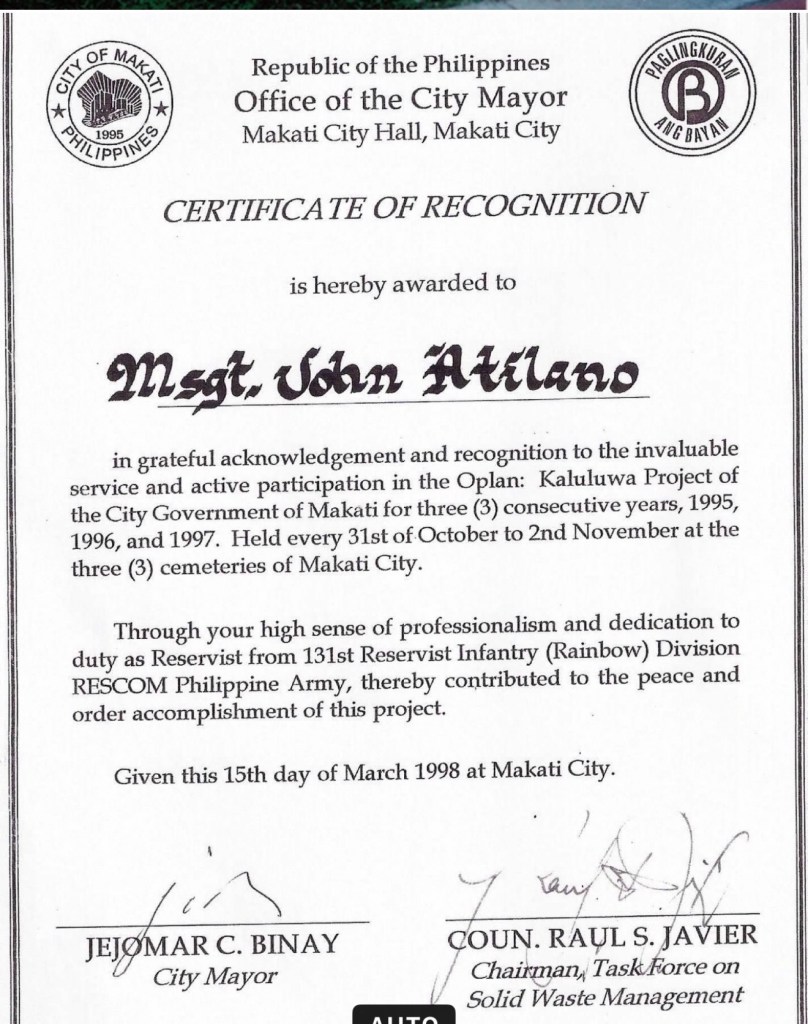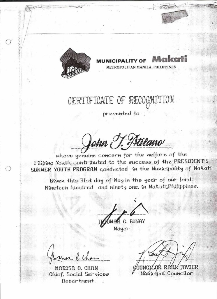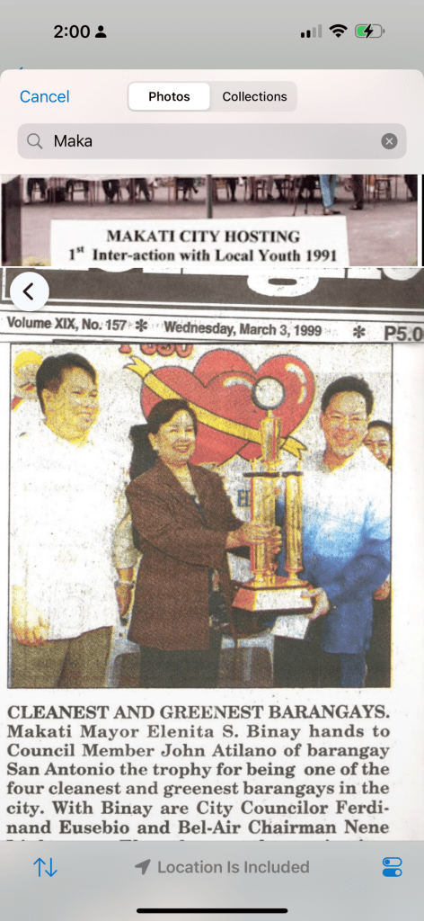 . Under our leadership, Makati won awards for being the cleanest and greenest city. In 1999, I was even nominated as one of the Ten Outstanding Young Men of the Philippines.