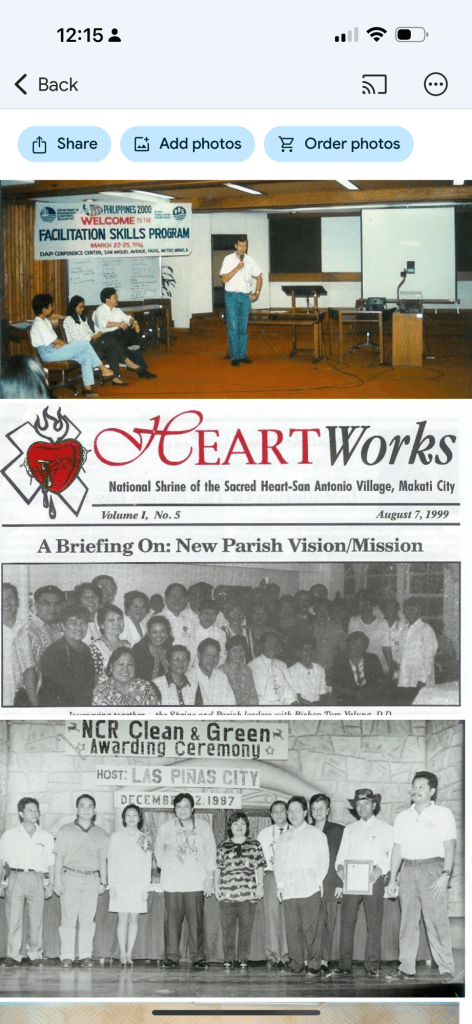 My work expanded to include environmental advocacy, joining the Pasig River Rehabilitation Program and leading community initiatives. I also became involved in youth organizations such as Rotaract, Y’s Men Club, and Makati YMCA. In the church, I served as Parish Youth Coordinator and later as Assistant Parish Pastoral Council member at the National Shrine of the Sacred Heart.