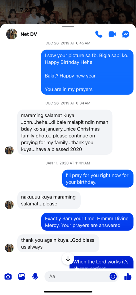 I told Kuya about it, and he explained it to me. I was so blessed what he have told me. It was God’s manifestation and Jesus was there too. A few weeks aftee, Pope Francis went home to God and Kuya snd his family went to Vatican to see the Pope’s tomb. He sent me photos of their trip, and the church where Pope Francis was brought was exactly the setting I saw in my dreams.