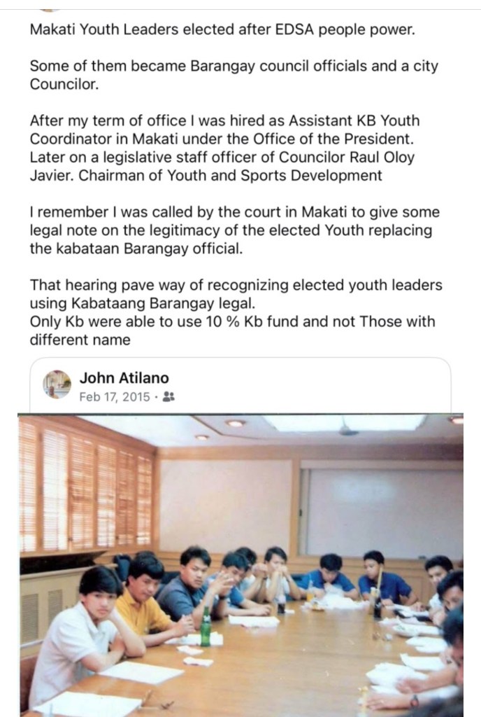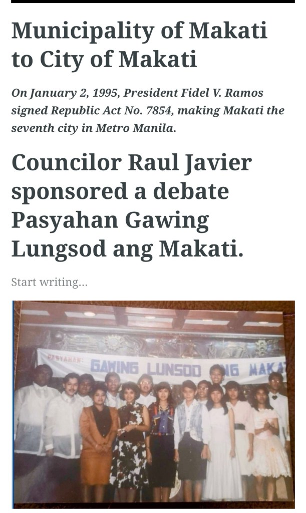 In the late 1980s, I transitioned into local politics, joining my friend Raul Oloy Javier as his legislative staff officer in Makati. Together, we championed youth programs, including the establishment of sports complexes. This work fulfilled me deeply.
