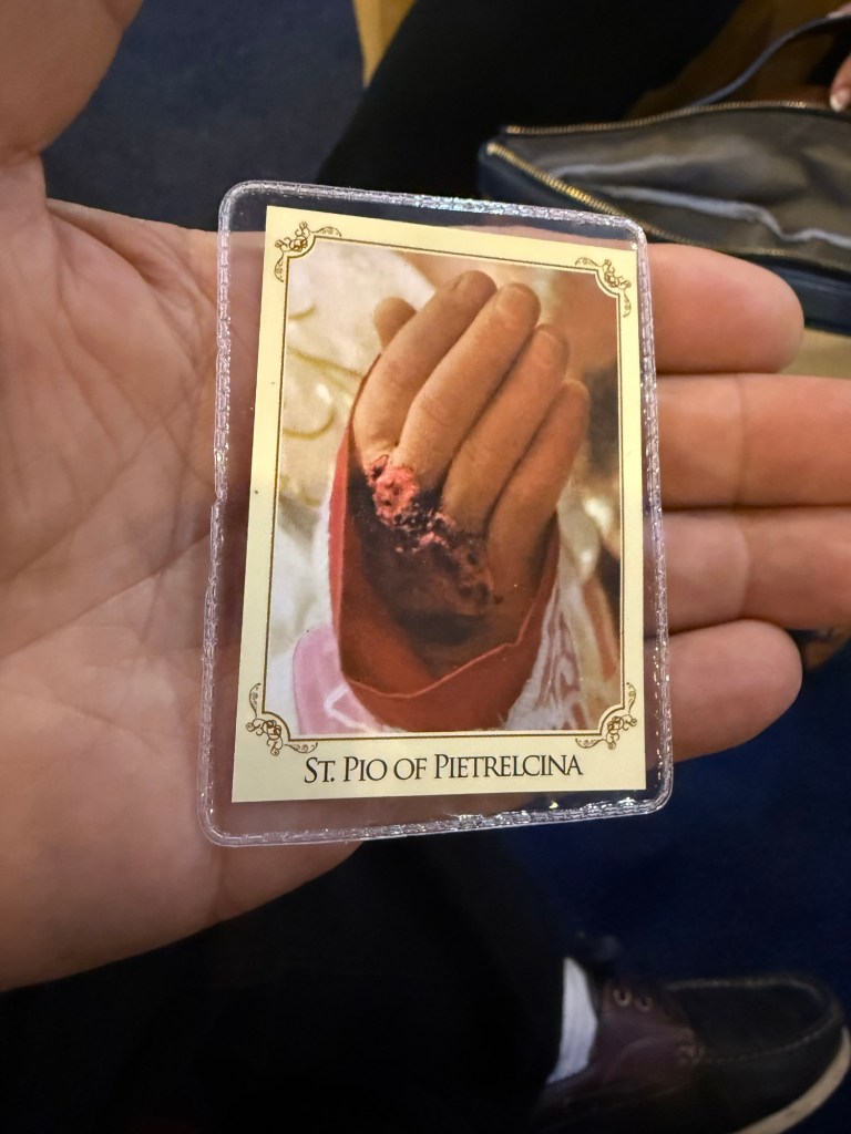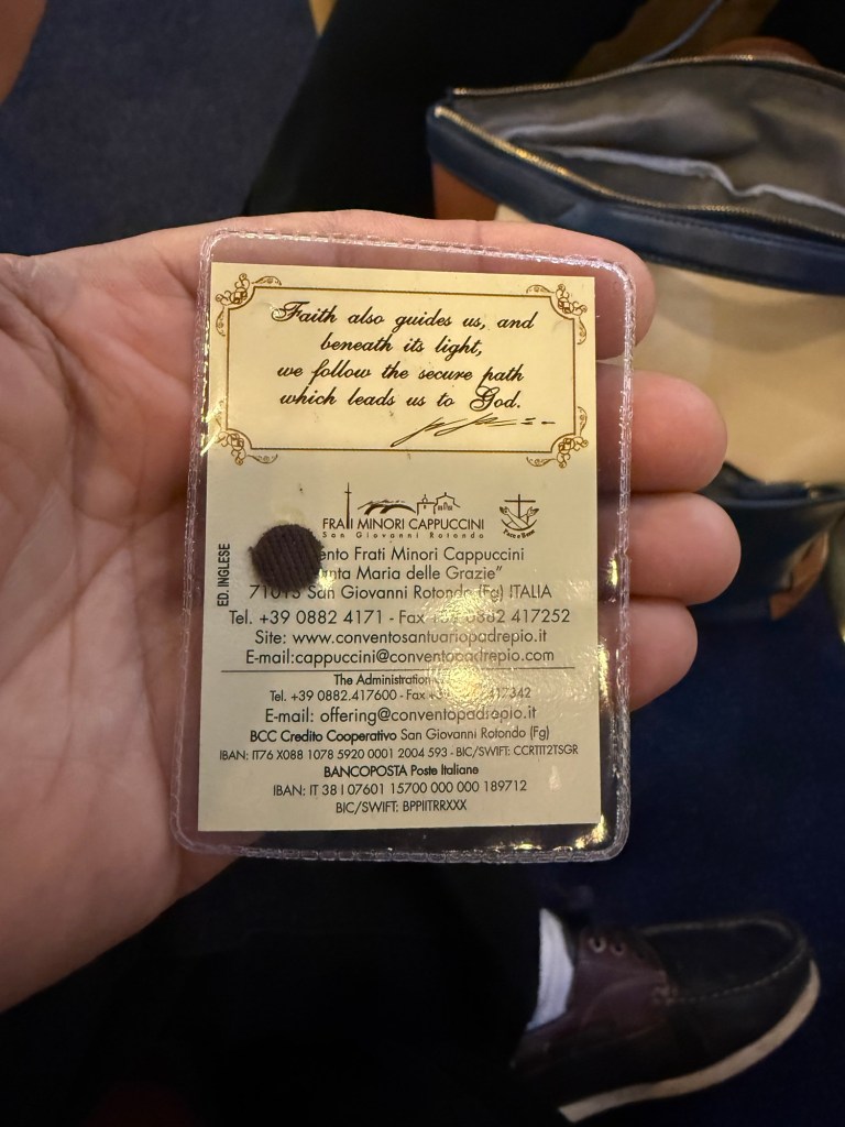 During our trip to Rome, I was gifted a relic of Saint Padre Pio.