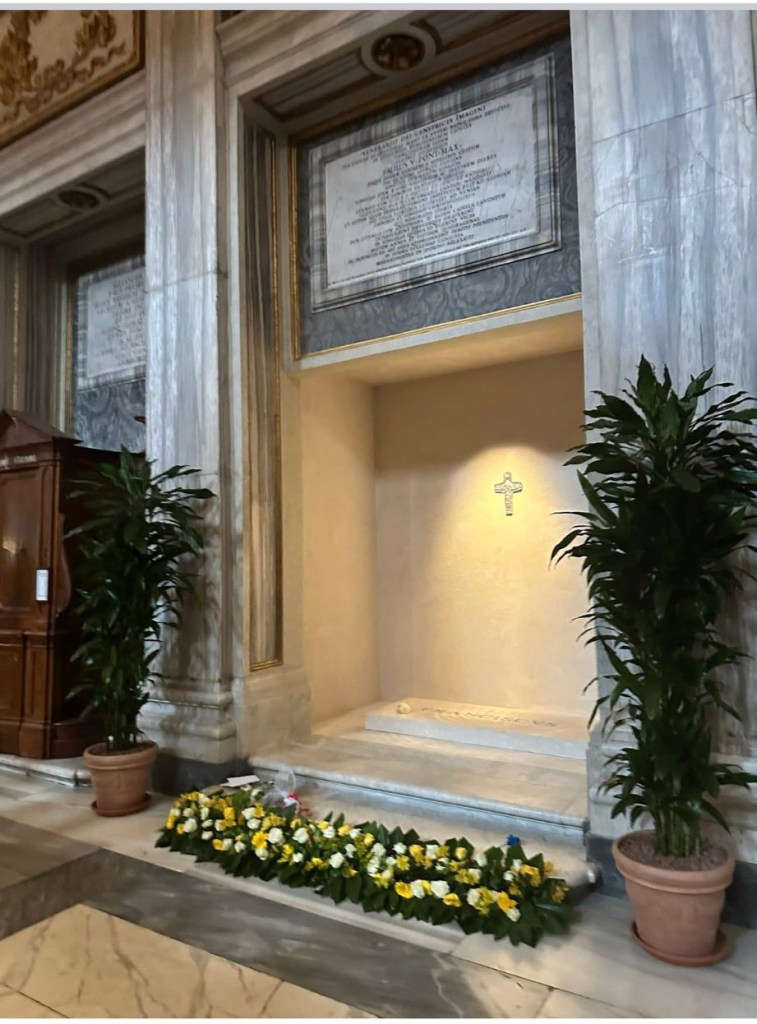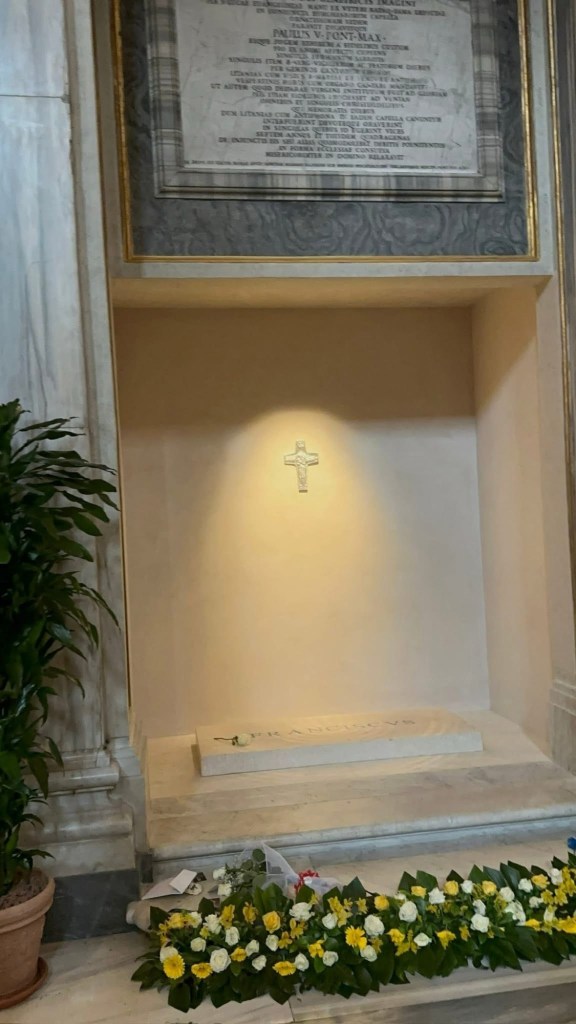 Now, standing at the place of his burial—Santa Maria Maggiore, where he was laid to rest on April 26, 2025—I can’t contain my emotions.