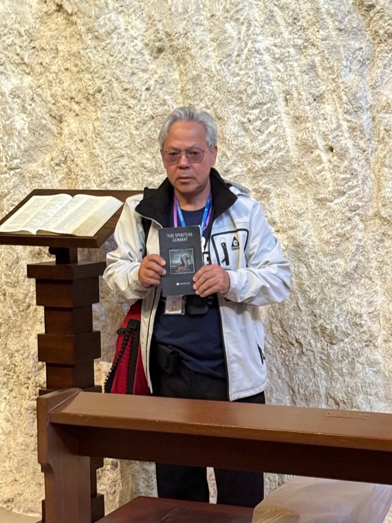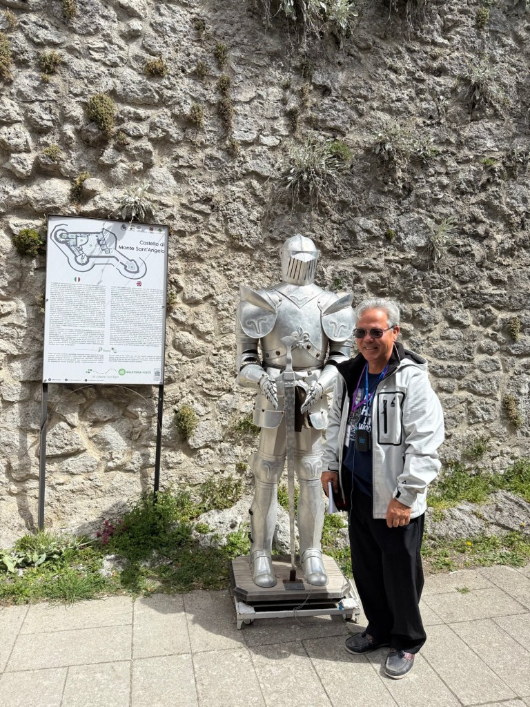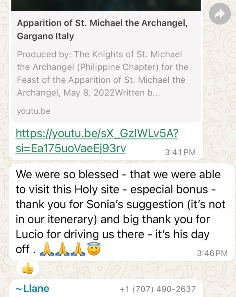 On May 31, 2020, I was given a precious gift—a portrait of the prayer to Saint Rafael . Now, in 2025, I find myself at the sacred Cave of Saint Michael,