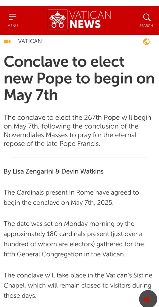 Election of New Pope May 8, 2025.